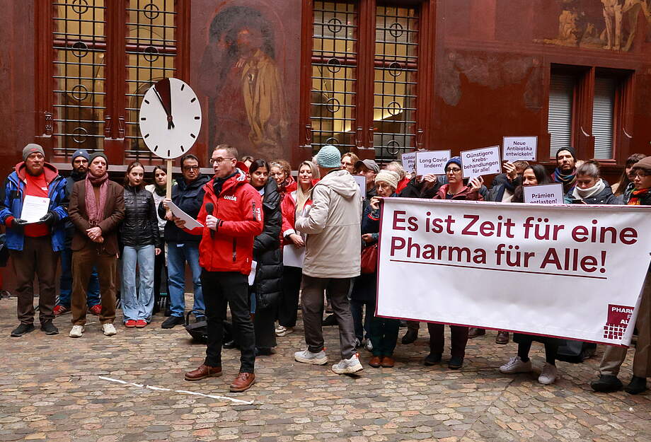Am Mittwoch, 17. Dezember, konnte die baselstädtische Volksinitiative Pharma für Alle eingereicht werden. 3526 stimmberechtigte Basler:innen fordern mit dieser Initiative, dass der Kanton einen Fonds für die gemeinwohlorientierte Versorgung der Bevölkerungen mit Medikamenten im In- und Ausland verwendet werden.